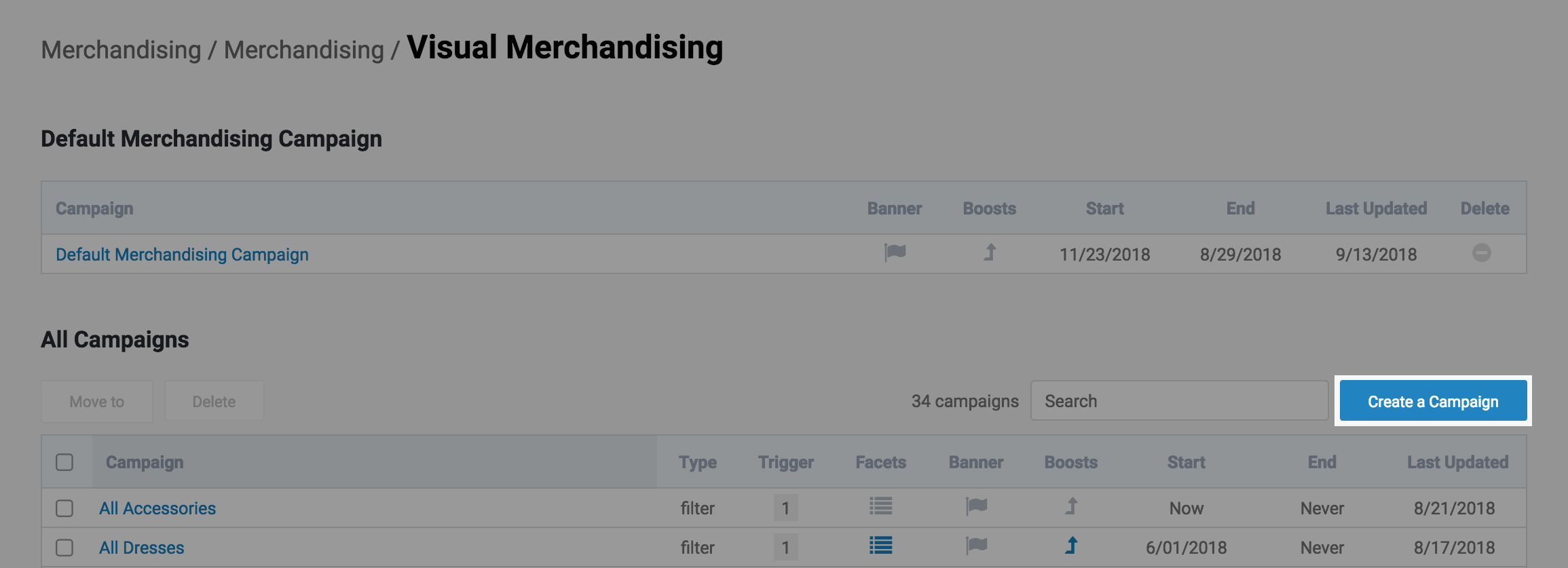 Begin by going to Visual Merchandising clicking "Add New Campaign" below the campaign list.
