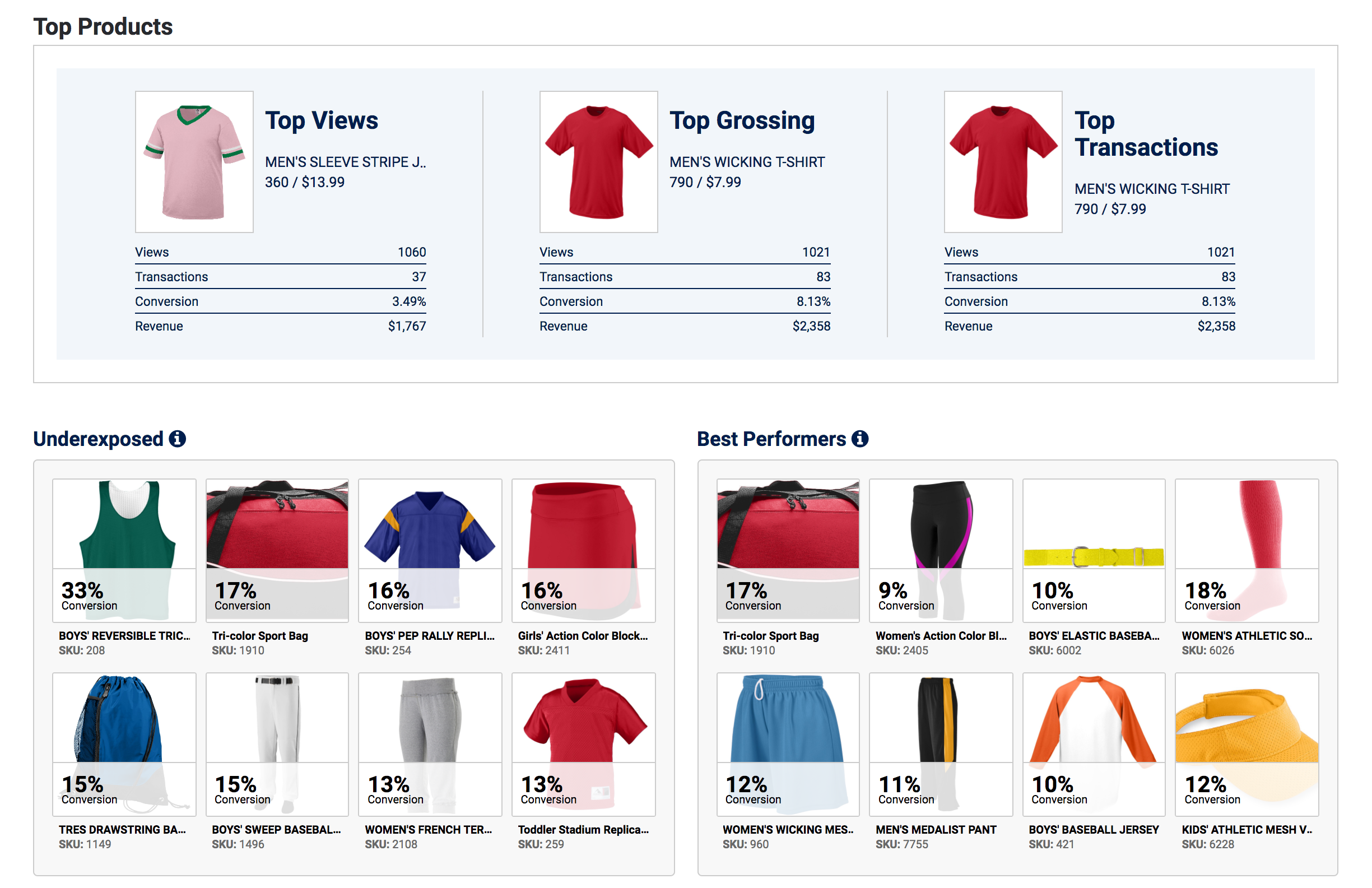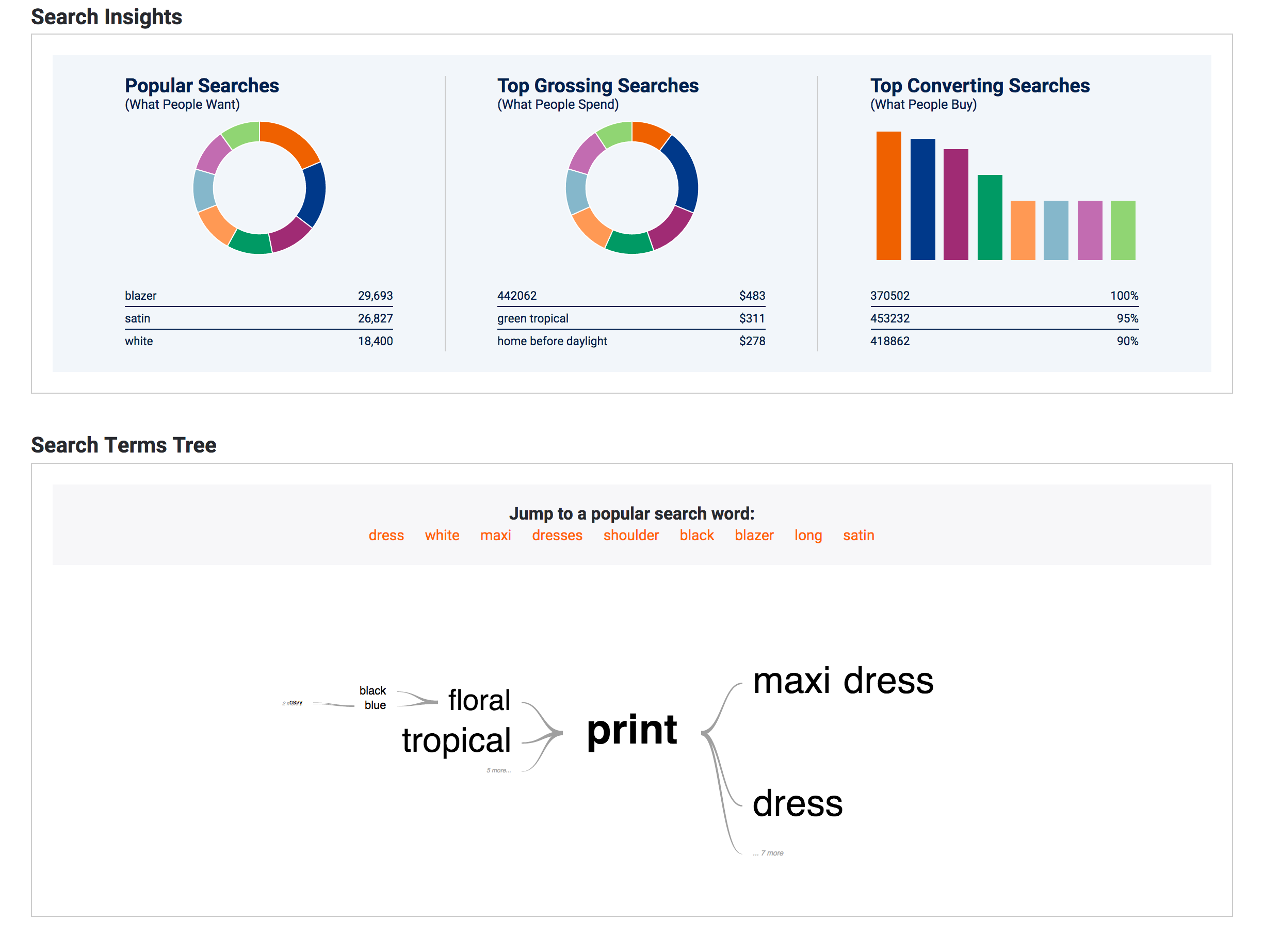 Athos' Reporting features help you understand areas of success and opportunities for optimizing your site, and gives you valuable information about how your shoppers are looking for your products.