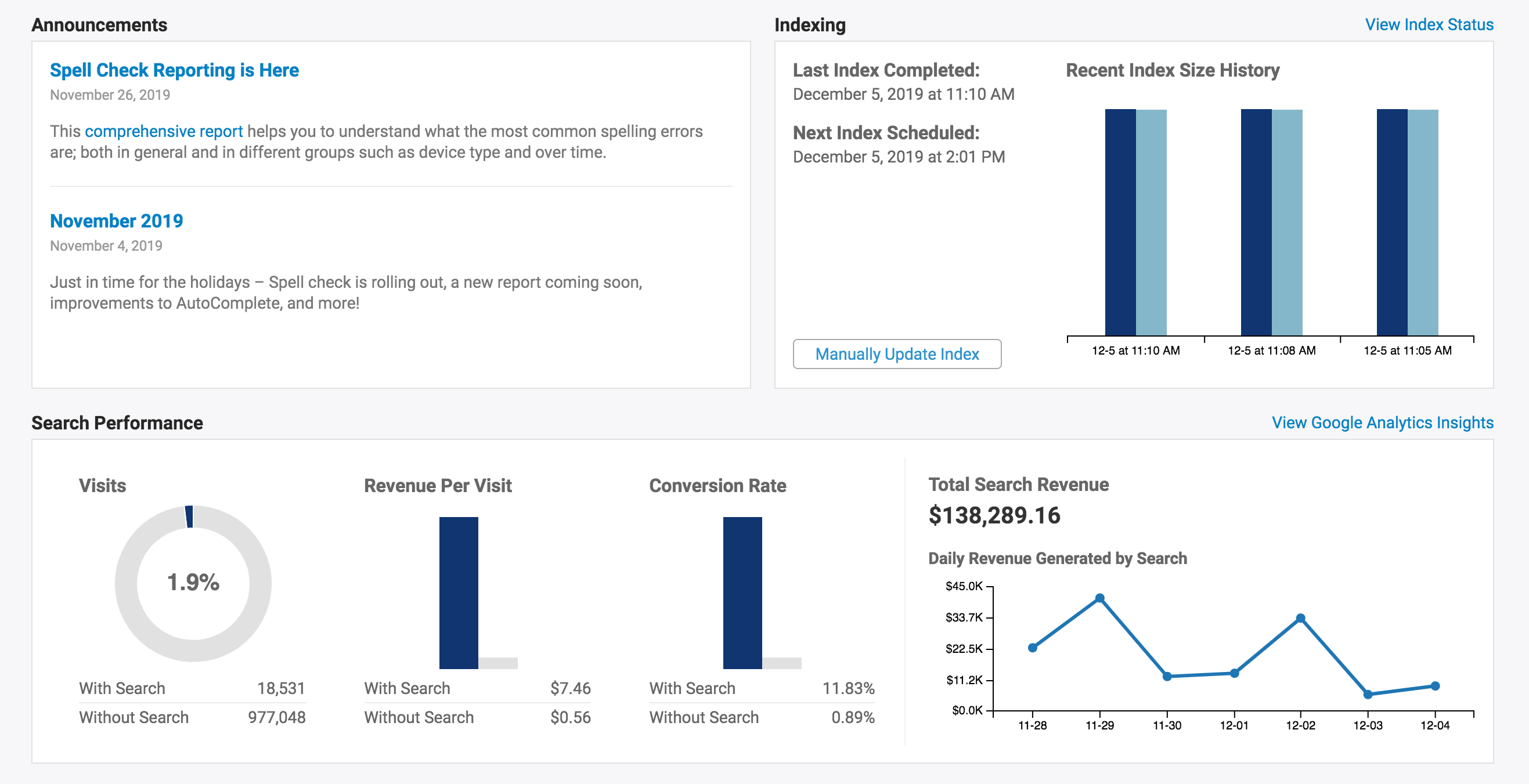 Basic reports are powered solely by Athos. These unique reports provide you visibility into your shoppers' interactions with your store. The Zero Results Searches Report, one of many reports in the management console, shows searches that yielded no results on your site. Reports like this can be leveraged to help improve relevancy and, ultimately, your store's performance.