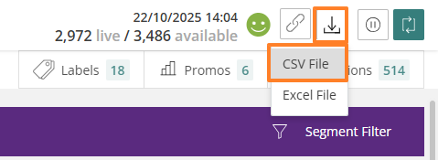 Once the feed build has completed, select the Download as CSV option here: