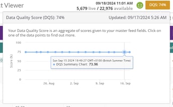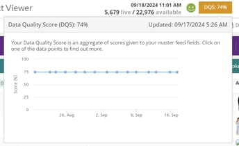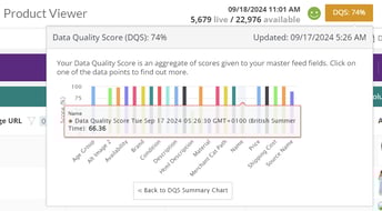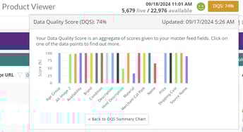 Up along the top right hand side of the Product Viewer module you'll see a little box with 'DQS' in it. This is a button for the Data Quality Score tool, and a 'portal' to a very handy way to help you improve your data's overall quality.