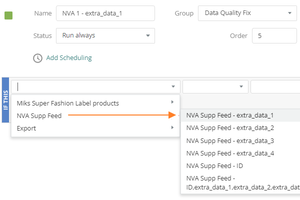then select the 'Is specified' action because it'll take place whenever there is data specified in the source for any product