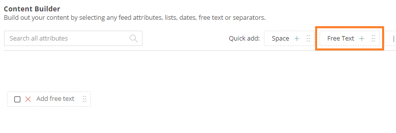 this will open up your Content Builder, its in here we'll construct that formula mentioned above. Firstly we'll select the Free Text box option (click the '+' icon):