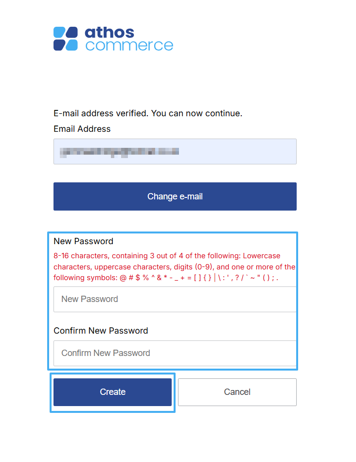 3. Once your email address has been validated, the final step is to create an account password that meets the following restrictions.