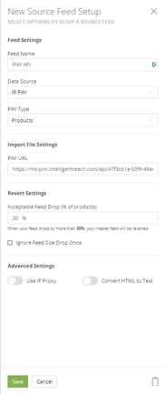 The URL for your PIM will automatically copy across, once you are happy with the set up then click save and rebuild your feeds