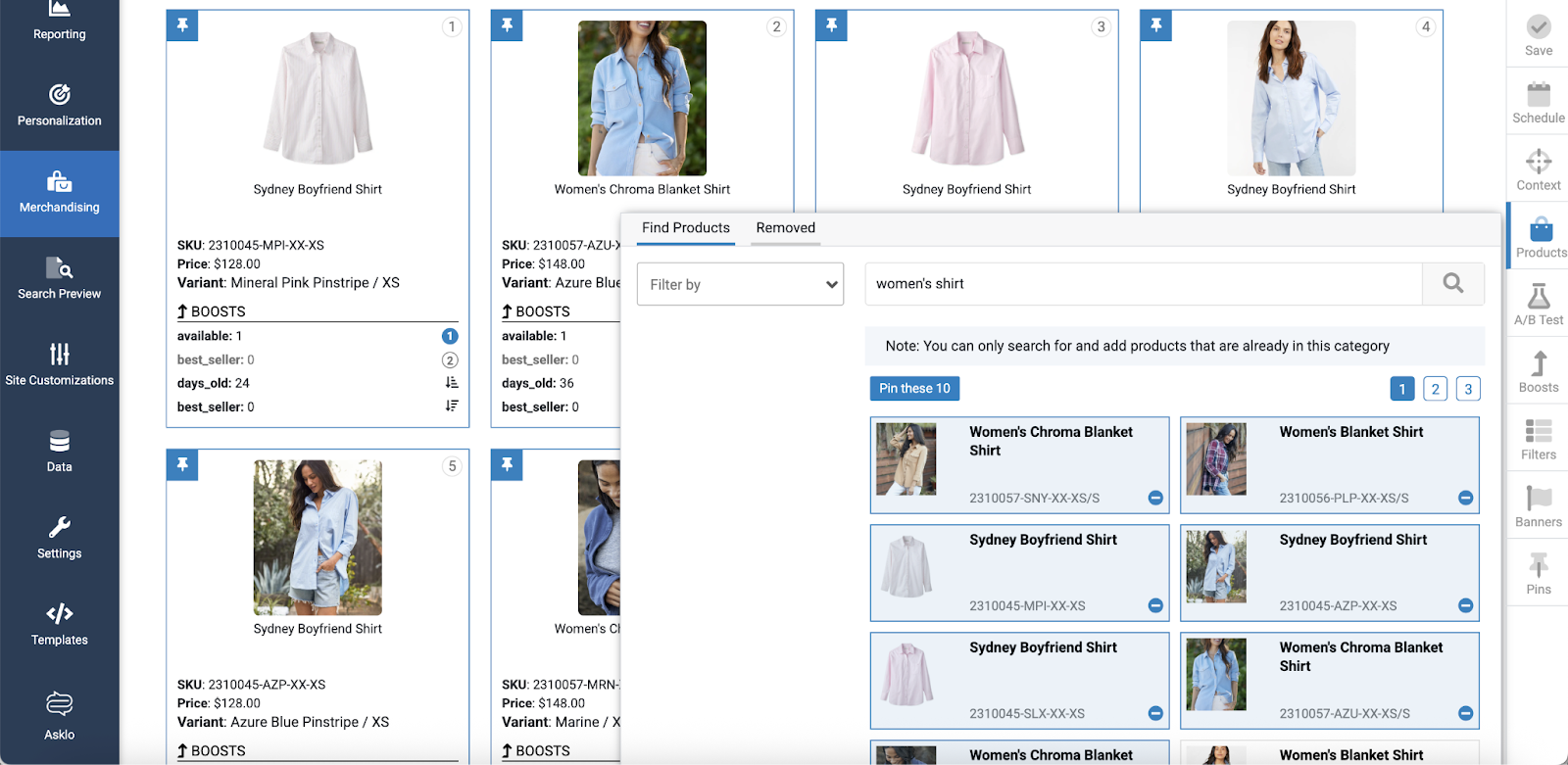 Merchants have the option of pinning products into specific positions (slots) within search results for specific categories. Follow this walkthrough for a visual tour.