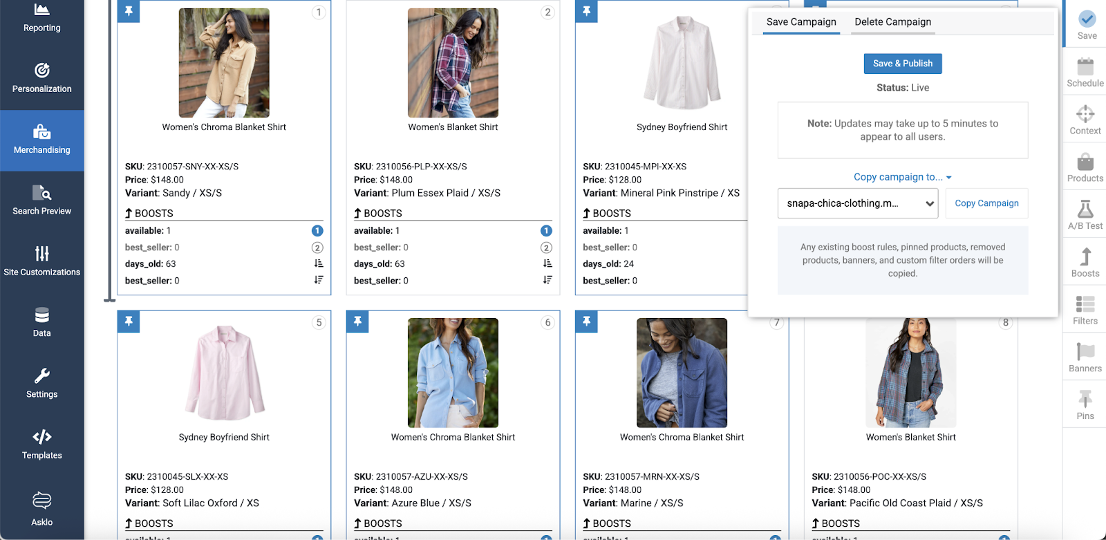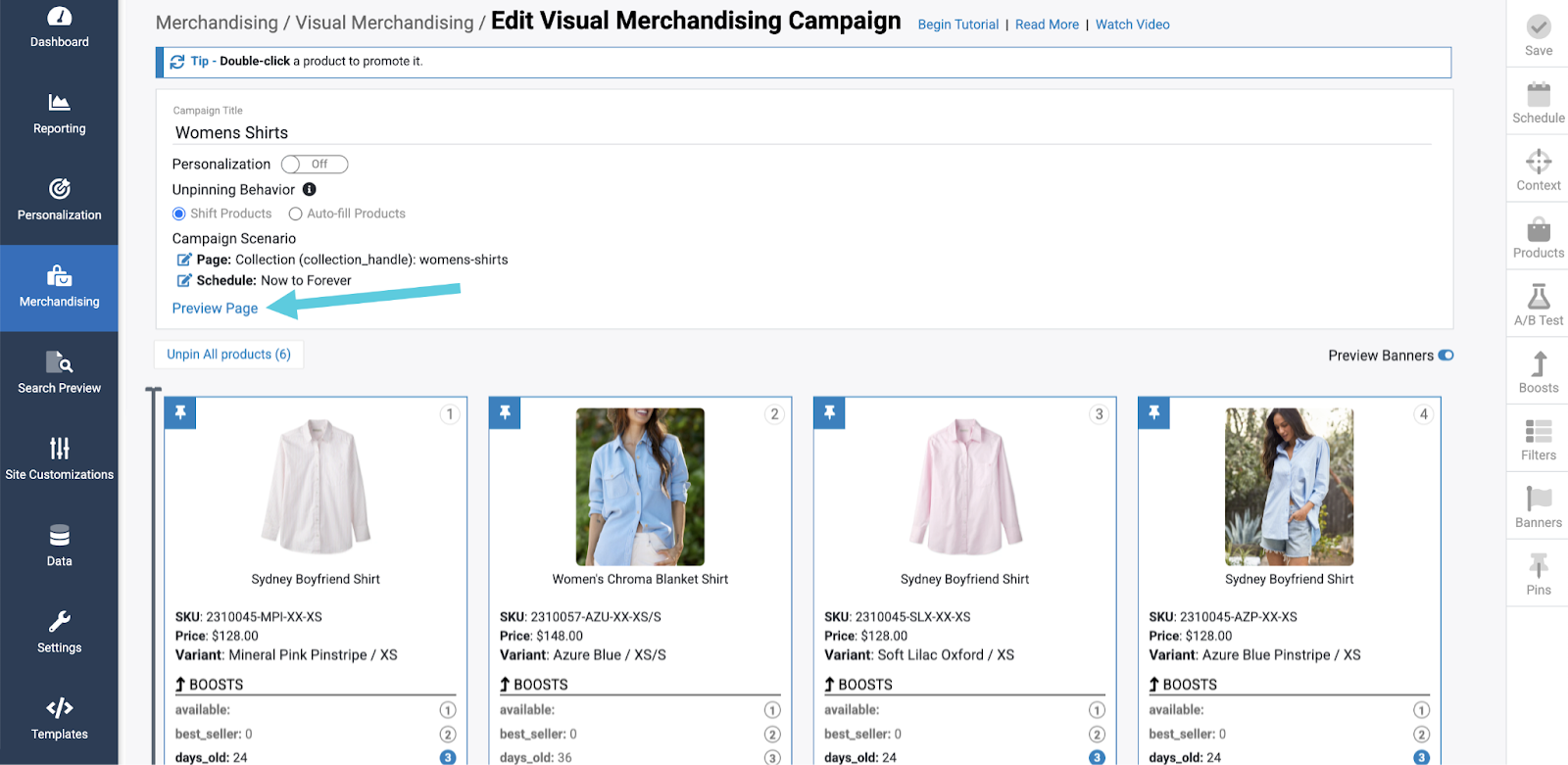 From this page, select a campaign to manage. In this example, we have chosen "Women's Shirts".