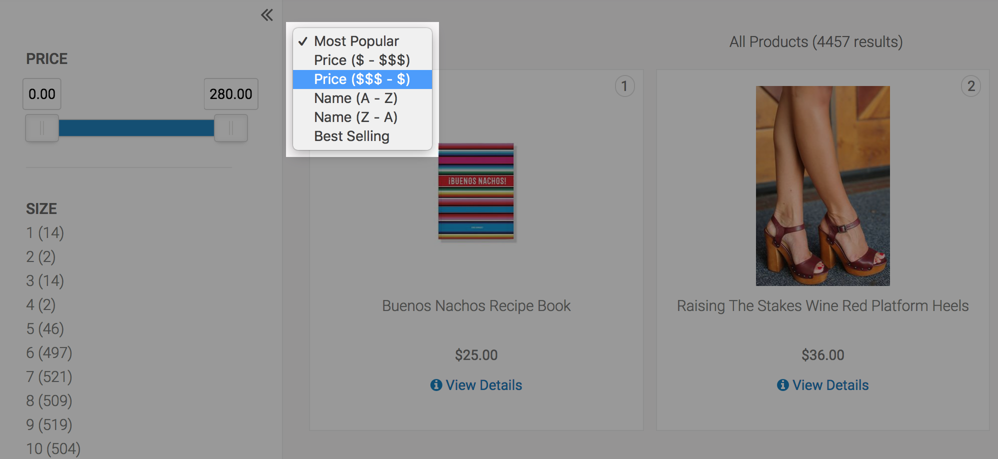 When the top sort is selected again ("Most Popular" in this example), the page goes back to the way it was before the shopper sort was applied.
