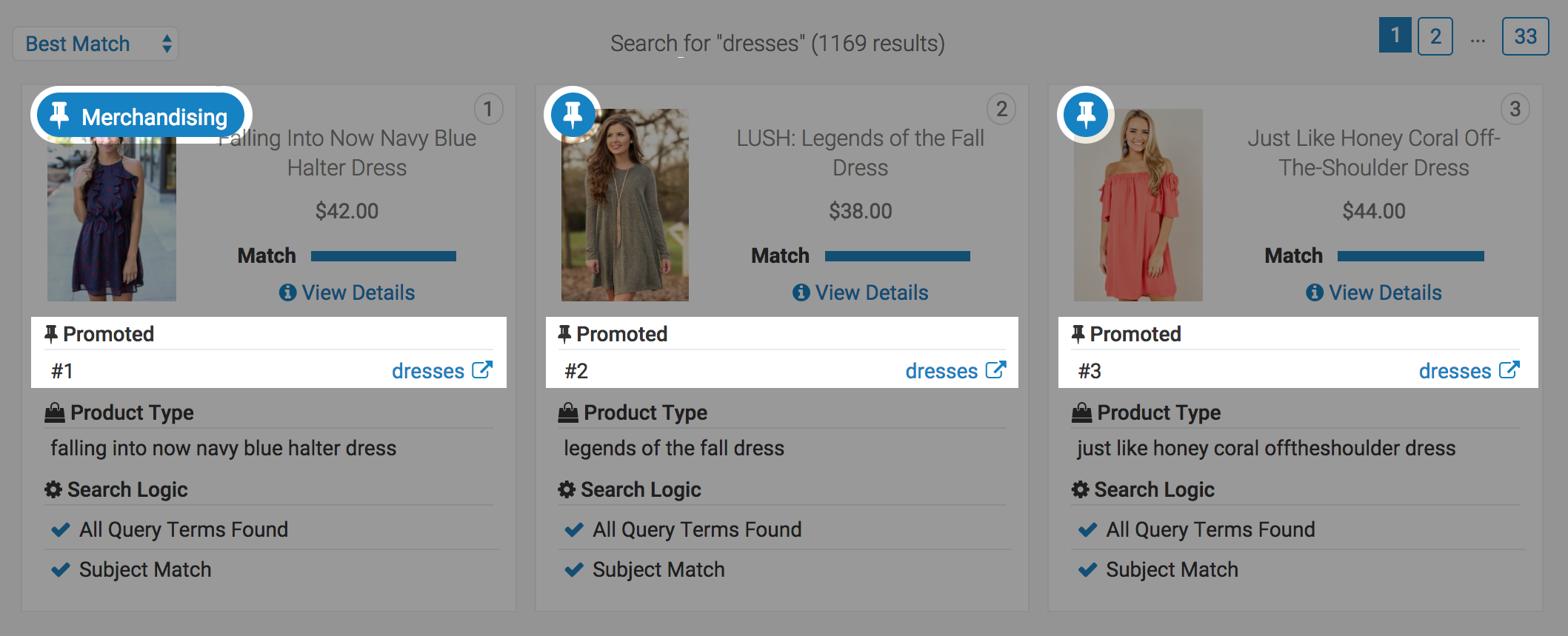 To see how products are arranged on Category and other non-Search pages, check out How Products are Arranged on Search Result Pages.