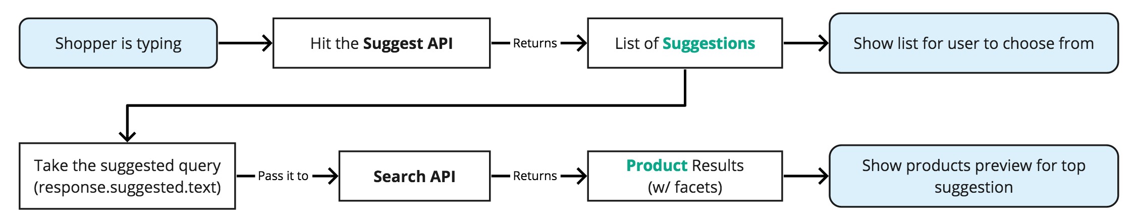 1. As a shopper types into the search bar, use our Suggest API to pull back query suggestions and spelling corrections.
