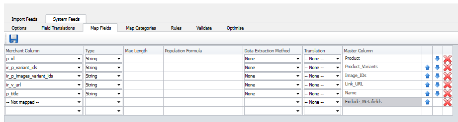 3. Master Field Columns to create in the secondary feed exactly as shown below: