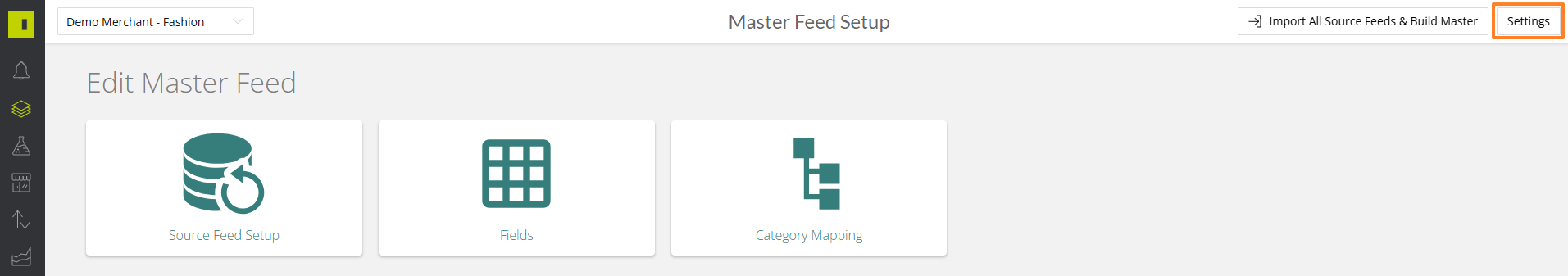 Once in Master Feed Manager, click the settings in the top right corner