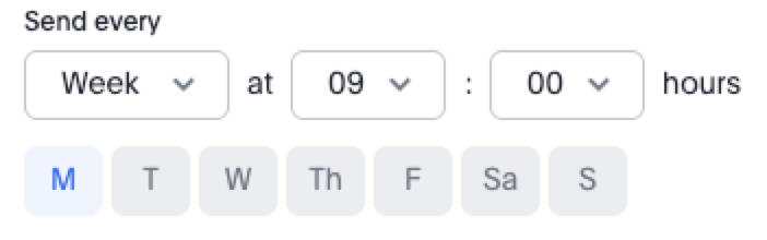 Once you have chosen the interval, click in the hour and minute boxes to choose the time. Then select the day of the week.