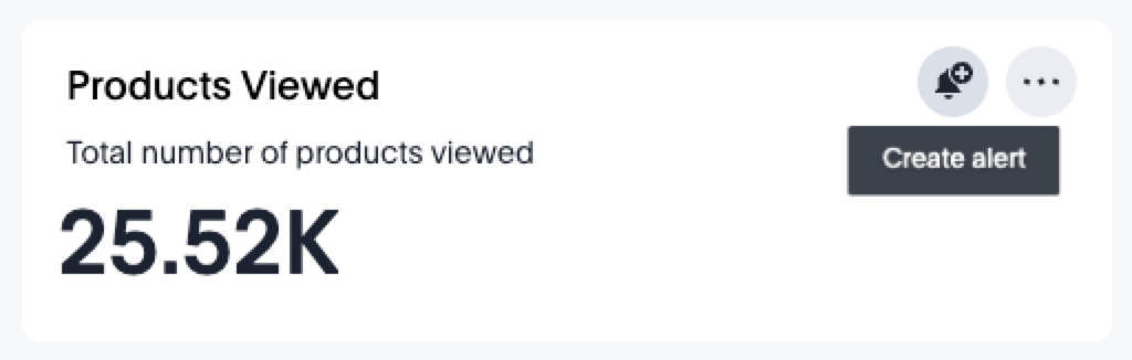 Within any report visualizations, you can mouse over the top-right corner of the section and click the "Create alert" button to set up an alert for key performance indicators (KPIs).
