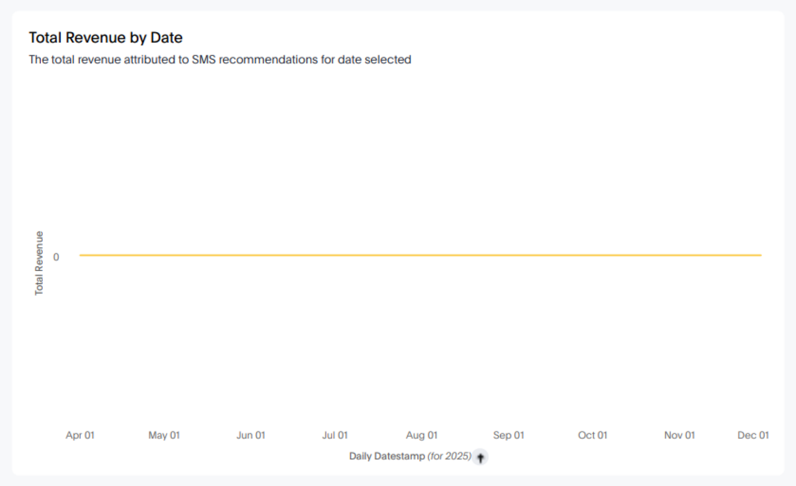 This chart shows the total revenue attributed to SMS recommendations for the selected date range.